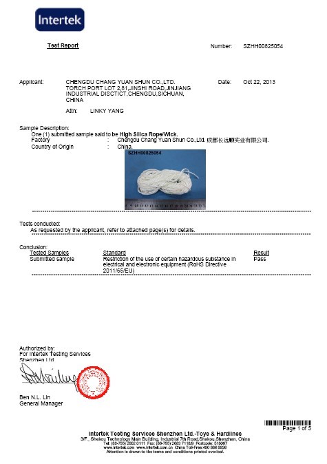 High Silica Rope (wick) for E-cigarette is a kind of high temperature resistance fiberglass rope made of special fiber strands and twisted together. The content of SiO2 is over 96%, it can be worked at 1000°C for a long time.